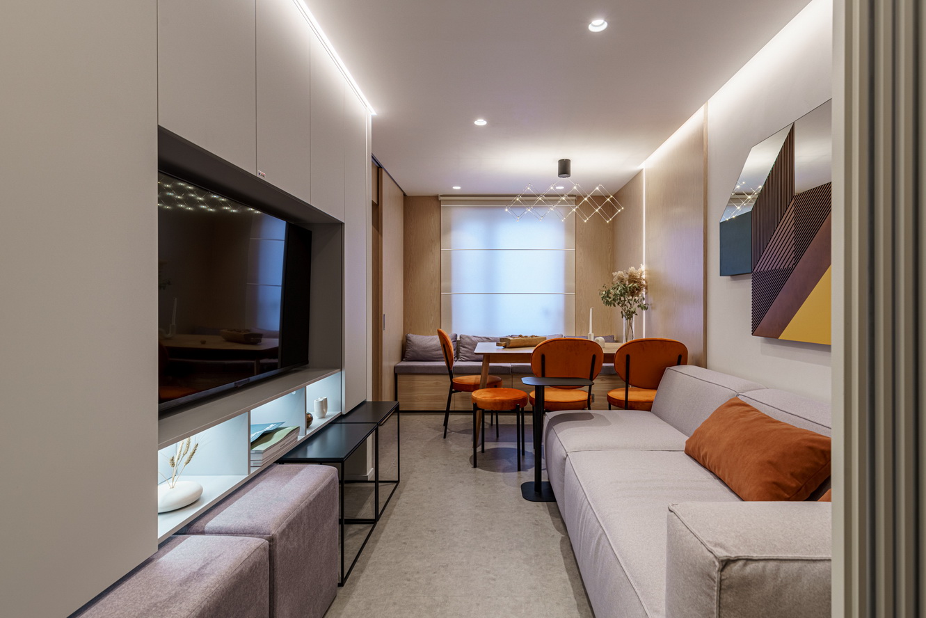 Правильное зонирование и функциональность интерьера стоят во главе, когда в квартире живёт 8 человек.